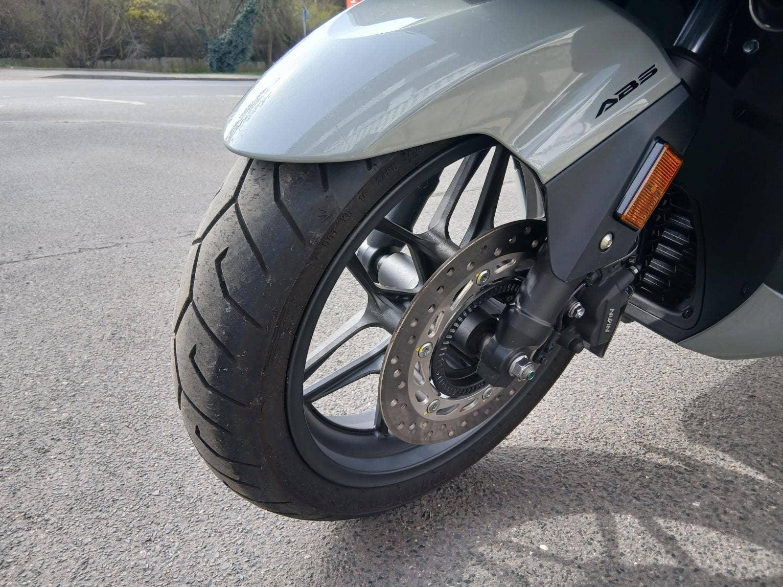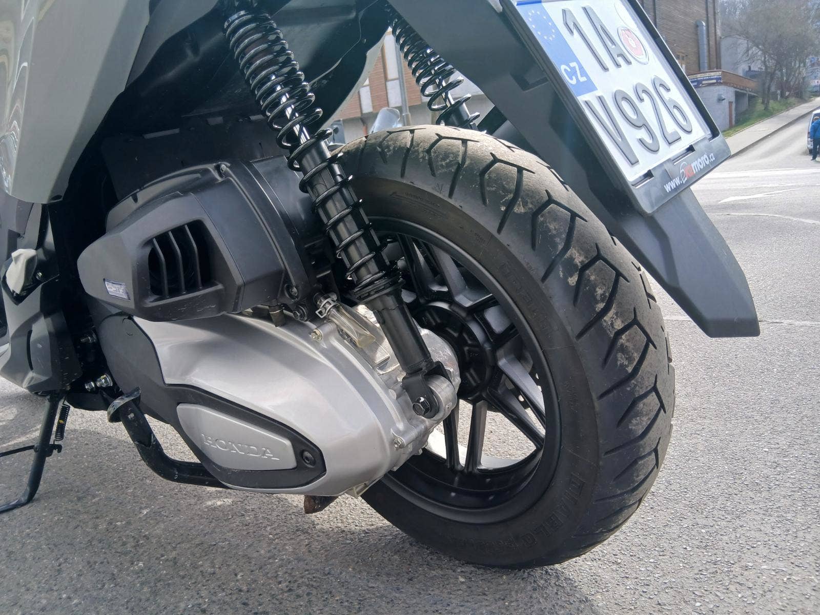 Drobné oděrky na levém boku (pád na místě ze stojánku).