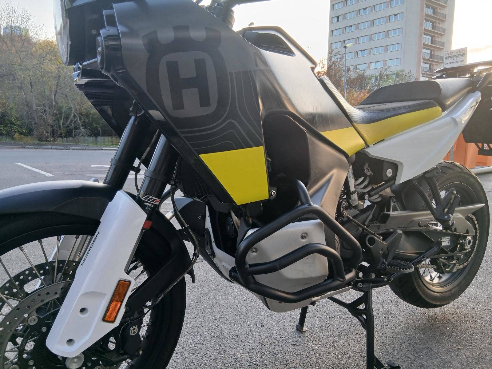 Motocykl je vybavený tempomatem, quickshifterem, vyhřívanými rukojeťmi, padacími rámy, centrálním stojanem, deflektorem plexi, plotnou kufru HepcoBecker, tabletem pro zrcadlení telefonu.