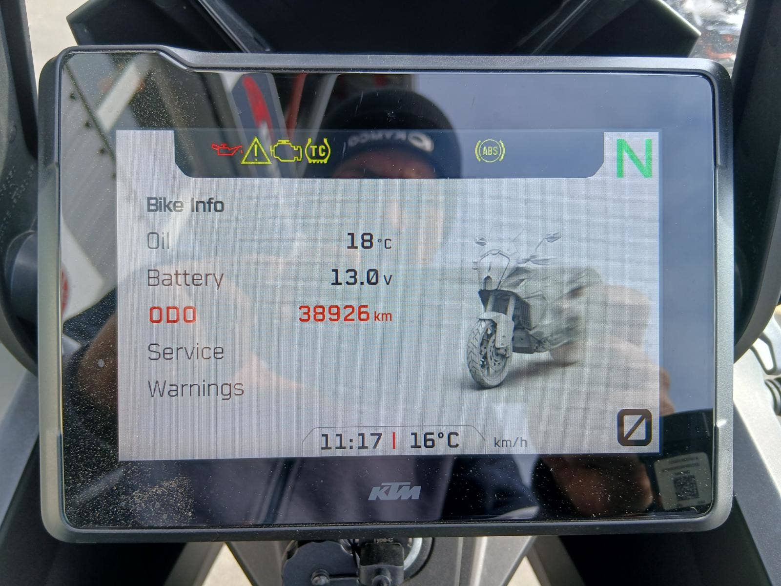 Platná záruka KTM do 21.9.2027, MOBILITY servis KTM také aktivní. "Velký" servis provedený 3.6.2025 při 25000 km (ventily, svíčky, brzdovka, chladící kapalina, vzduchový filtr, řetězovka).