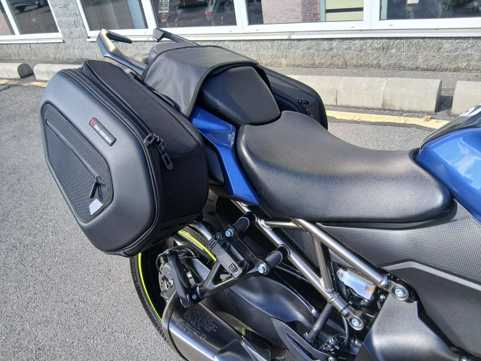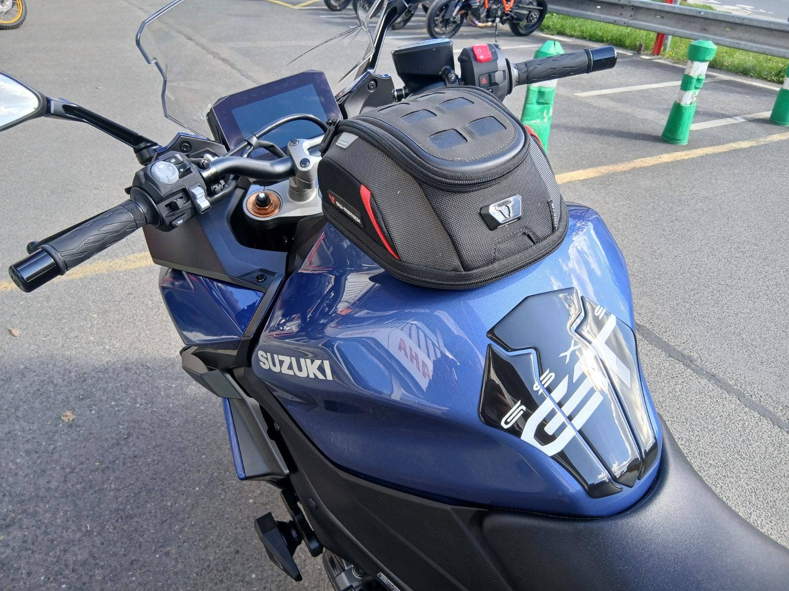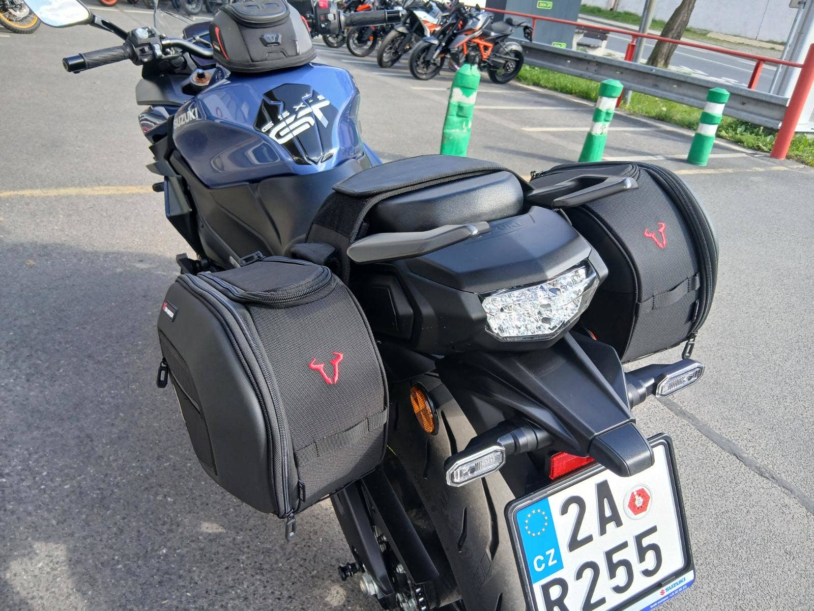 Motocykl je dovybavený bočními brašnami SW-Motech BLAZE (s podpěrou, snadno snímatelné), tankvakem SWMotech a padacími protektory RD MOTO (dvoubodové provedení).