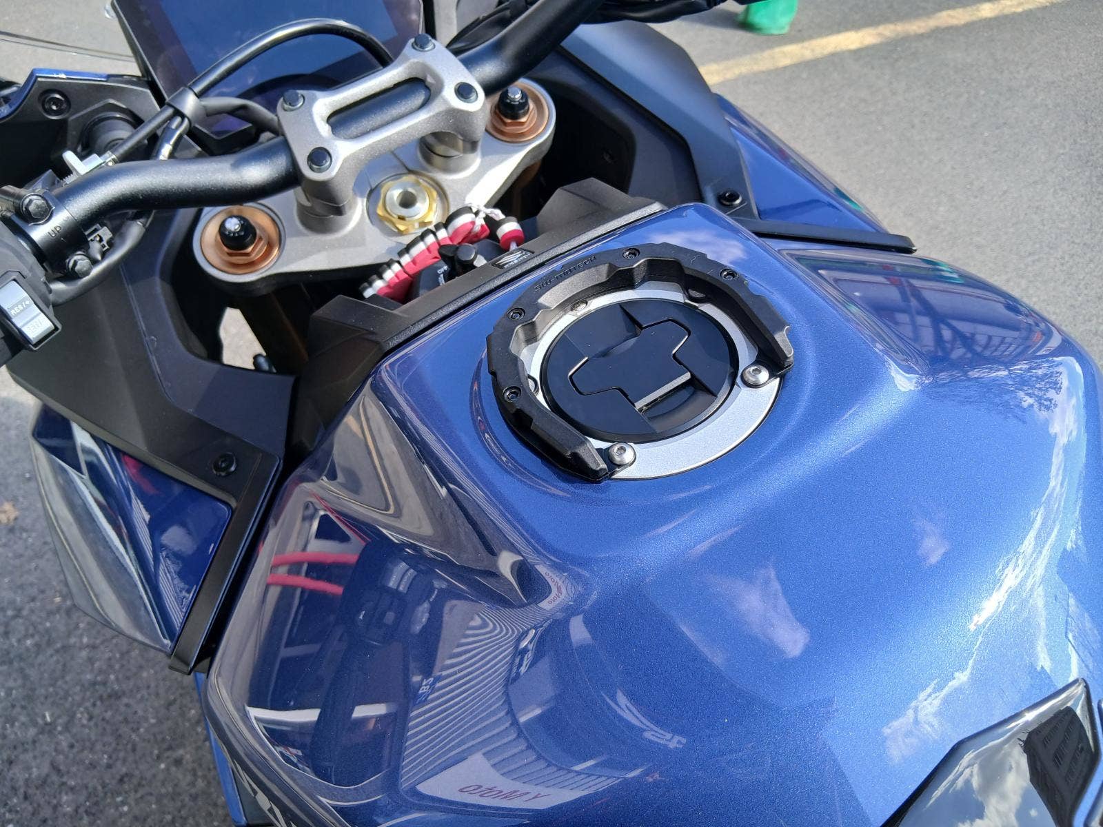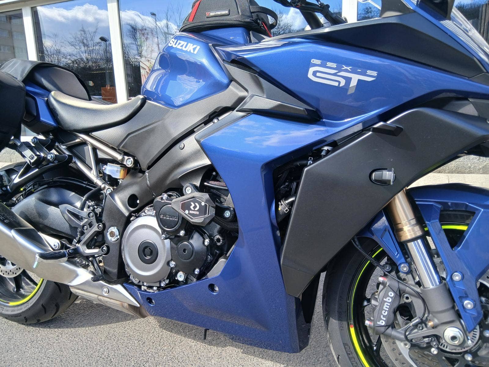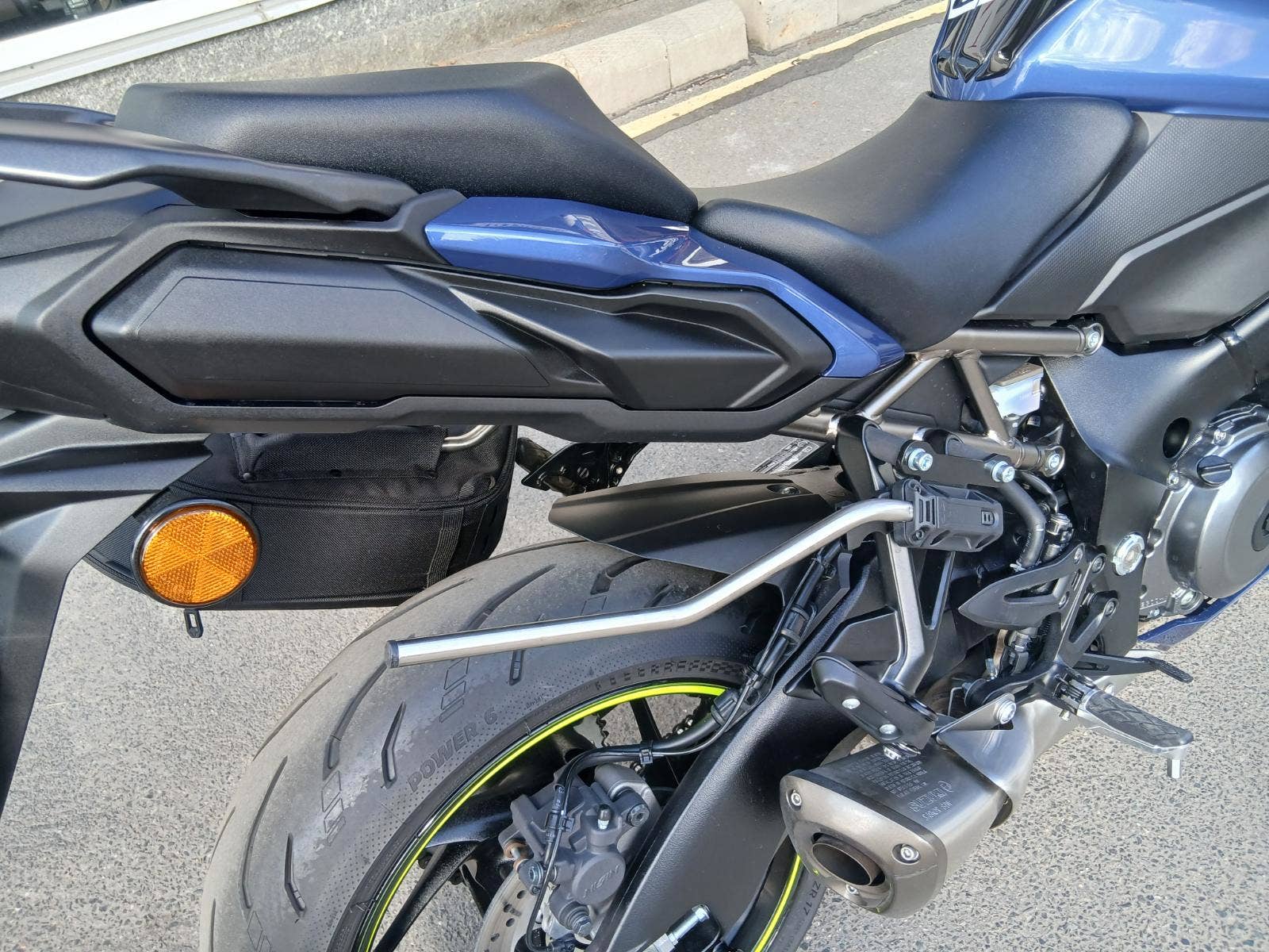 Motocykl je dovybavený bočními brašnami SW-Motech BLAZE (s podpěrou, snadno snímatelné), tankvakem SWMotech a padacími protektory RD MOTO (dvoubodové provedení).