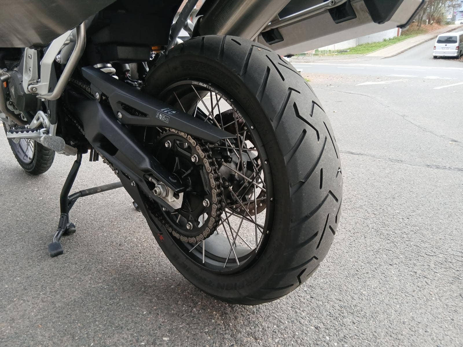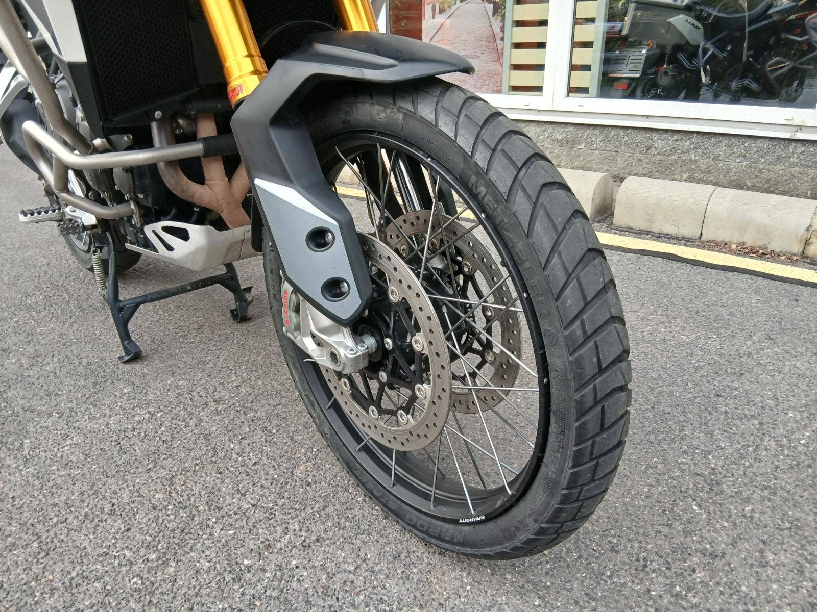 Motocykl má bohatou výbavu: vyhřívané rukojeti, tempomat, quickshifter, padací rámy, centrální stojan, kryty rukojetí, sadu originálních bočních kufrů.